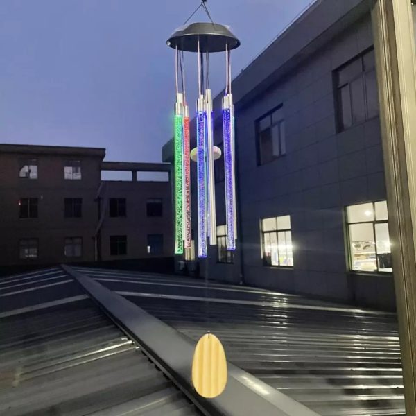 Wind Chime is equipped with solar panel and charges all day long with solar energy. It lights up automatically at night. The rods make beautiful melody when wind blows. Colorful lights give amazing look.